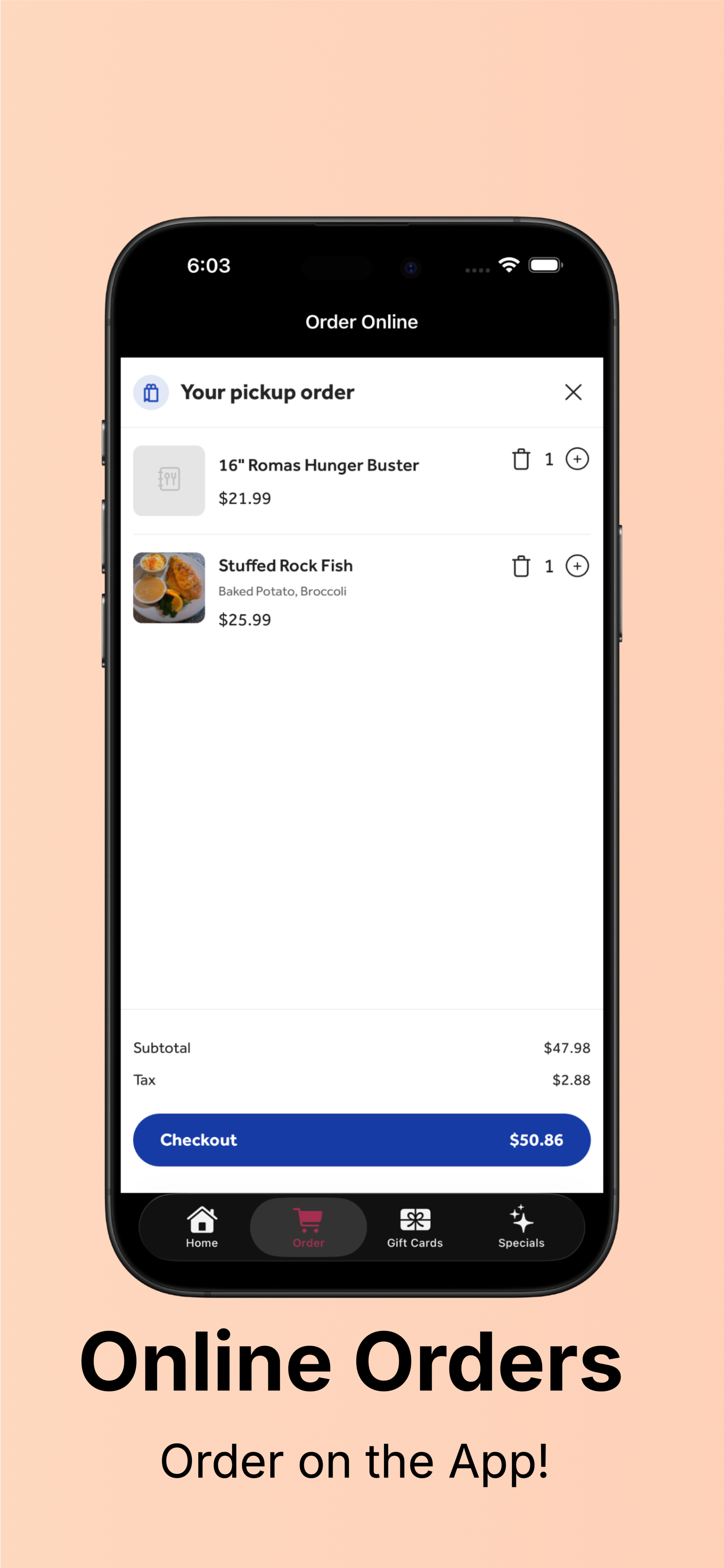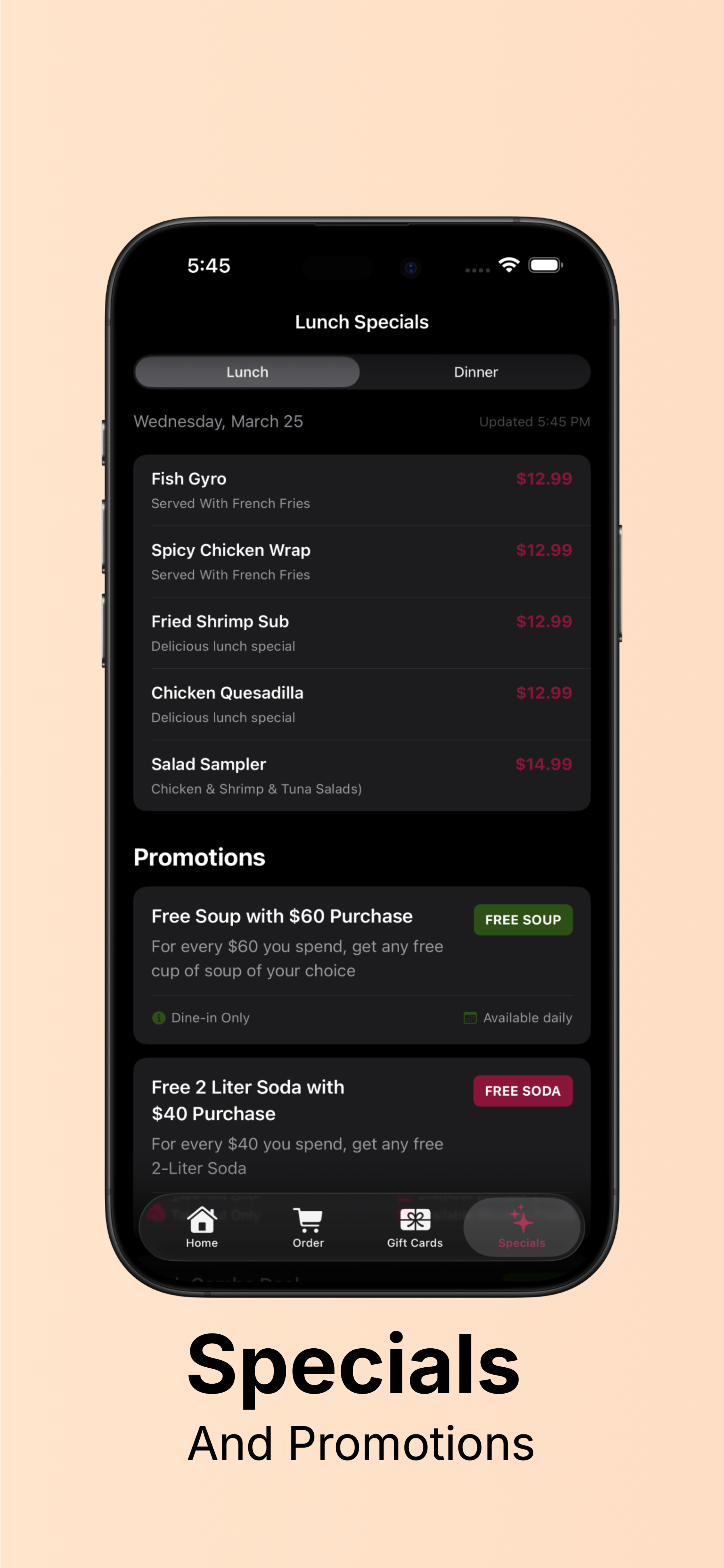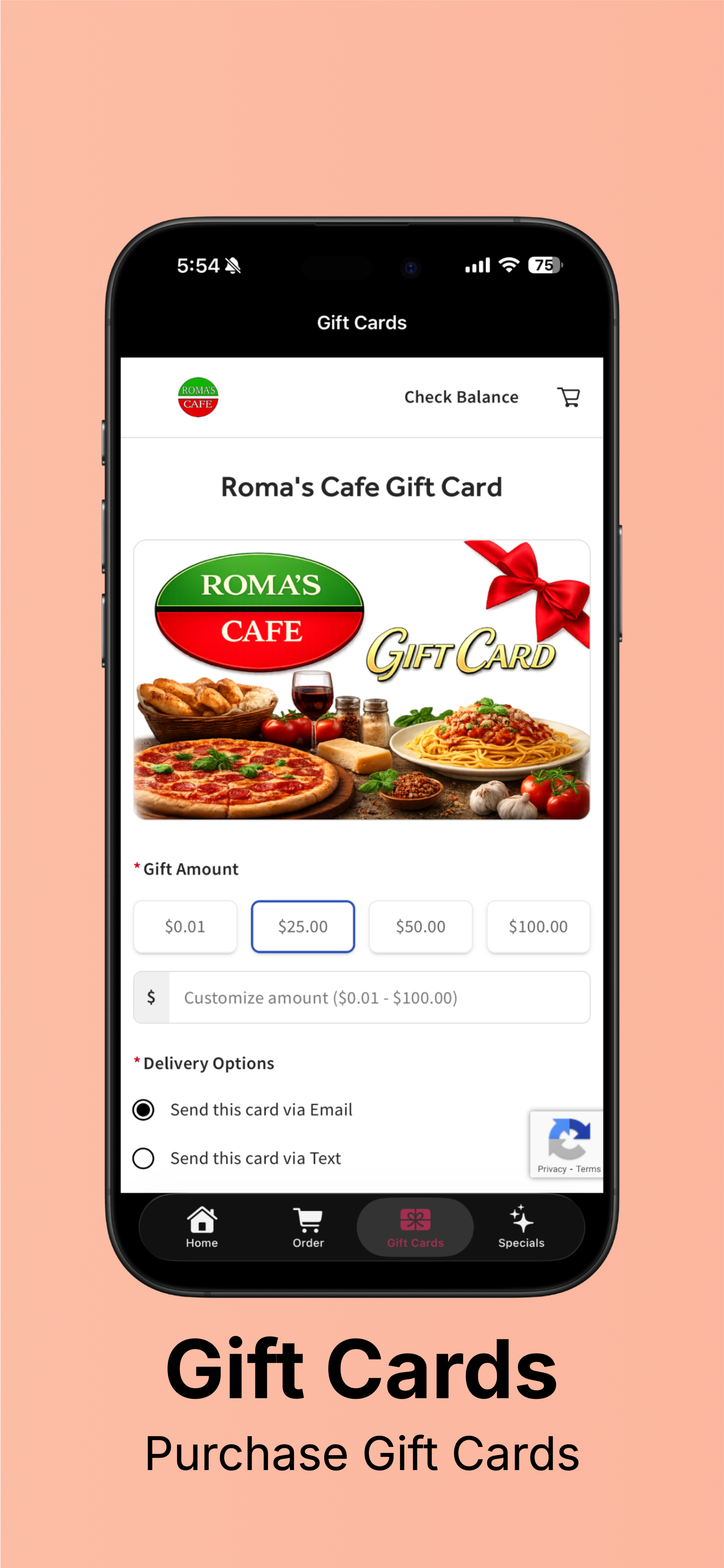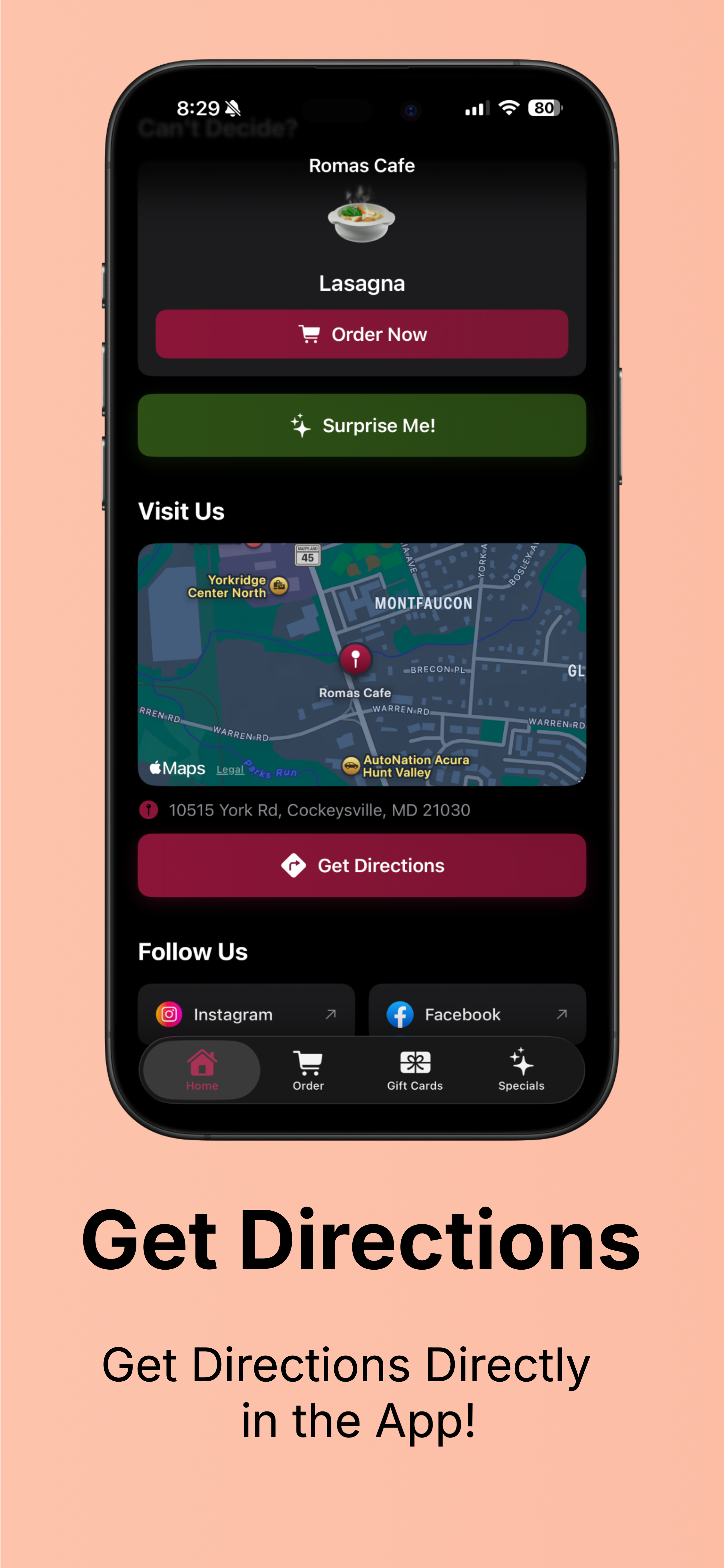 Roma’s Cafe is a full-stack restaurant and customer engagement app I designed and developed to modernize my family’s restaurant through a unified digital platform. Built as an all-in-one customer experience solution, the app streamlines restaurant discovery, menu browsing, online ordering, reservations, gift card purchases, daily specials, and customer interaction through a polished mobile-first interface.